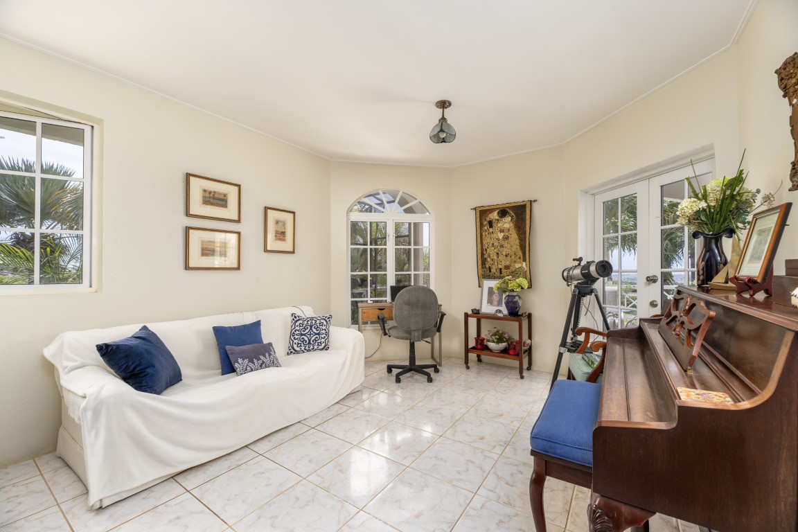 Step outside from the living home to the spacious patio, which is partially covered, offering breathtaking views of the southeast coast and as far as The Crane Resort. Situated at an elevation of approximately 350 feet, this exceptional location guarantees unobstructed vistas, and as the property is positioned at the edge of the estate, no future development can block these magnificent views.